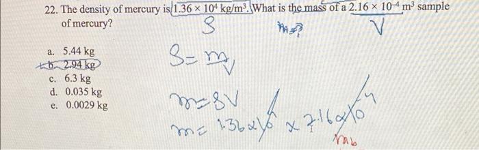 Solved 22 The Density Of Mercury Is 1 36 X 104 Kg M3 What Chegg Com